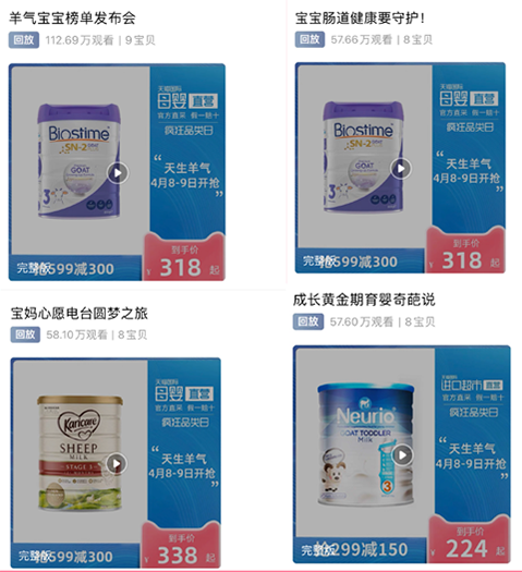 4月6-9日“天生羊气”黄金奶源新动力,品类日微博话题关注度超高,总阅读量达2.1亿,讨论、总互动量超10万次;PGC 直播会场总UV10万+。进店UV2.9万+;UGC直播会场总触达人数达1004万+;UGC直播会场总pv达259万+;淘内图文内容分享总触达人数1005万+等,根据这些数据,足以表明推动羊奶粉品类走向大众视野、普及羊奶粉市场认知的重要性和必要性。