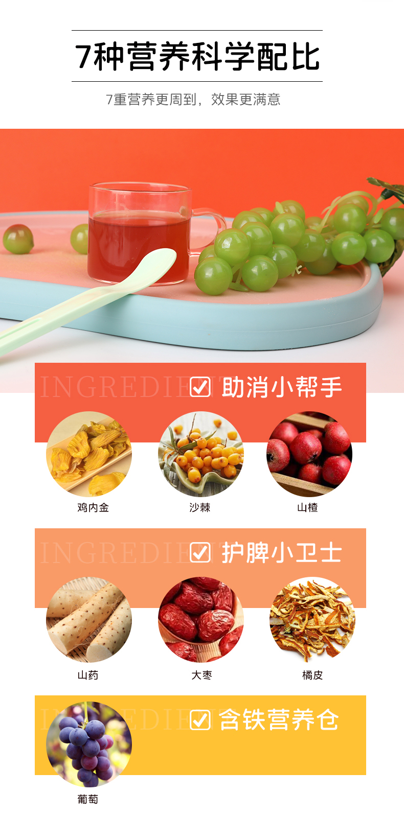 全新升级的善卡优畅饭饭系列,在保留药食同源科学配比的前提下,不添加任何的人工色素剂、蔗糖、食品添加剂,为孩子均衡的补充营养,帮助孩子肠胃更好的消化吸收,提高宝宝的食欲。据调查,大部分不爱吃饭,消化不良的宝宝,在坚持食用3—5天以后,有了明显的改善,得到了宝妈们的认可。